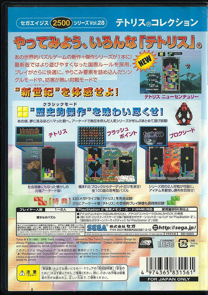 PS2 – Sega Ages 2500 Tetris Collection back Published July 9, 2016 at 707 × 1000 in The Tetris Collection ← Previous Next → PS2 – Sega Ages 2500 Tetris Collection back PS2 – Sega Ages 2500 Tetris Collection back